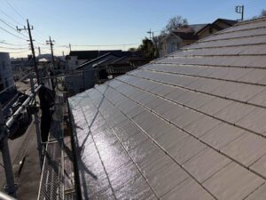 - 剥がれた塗膜を丁寧にケレン。厚型スレート屋根塗装完成!
