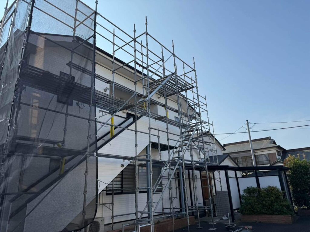 足場組み完了!これから塗装工事が始まります
