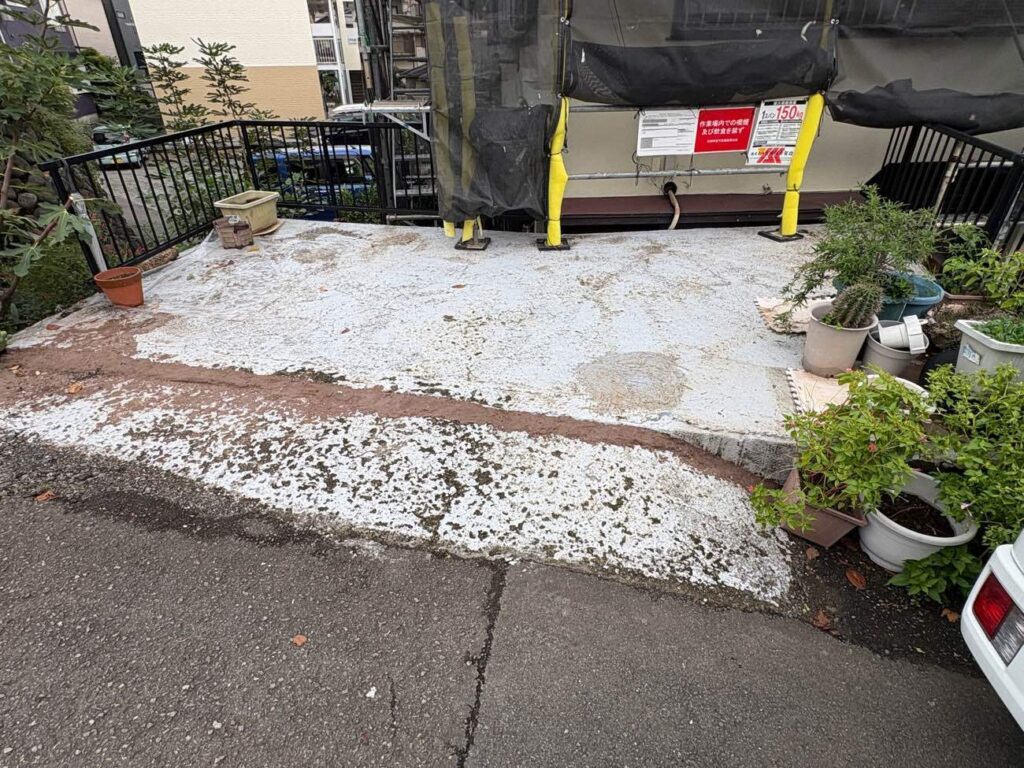 駐車場にも足場が載っています。