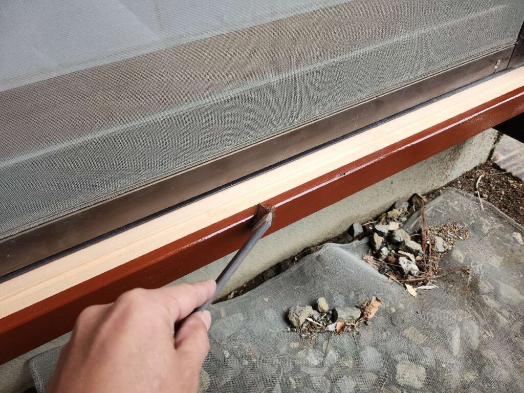 木製の雨戸一筋(雨戸のレール)の交換を行なった