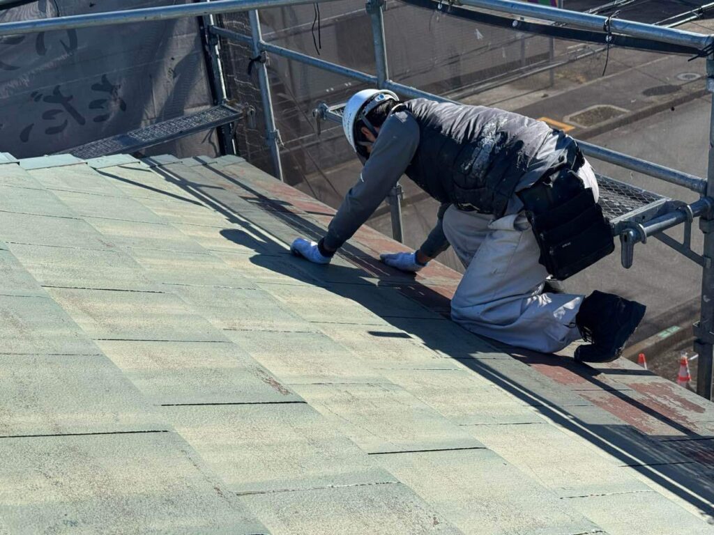 剥がれた塗膜を丁寧にケレンし屋根塗装が完成しました