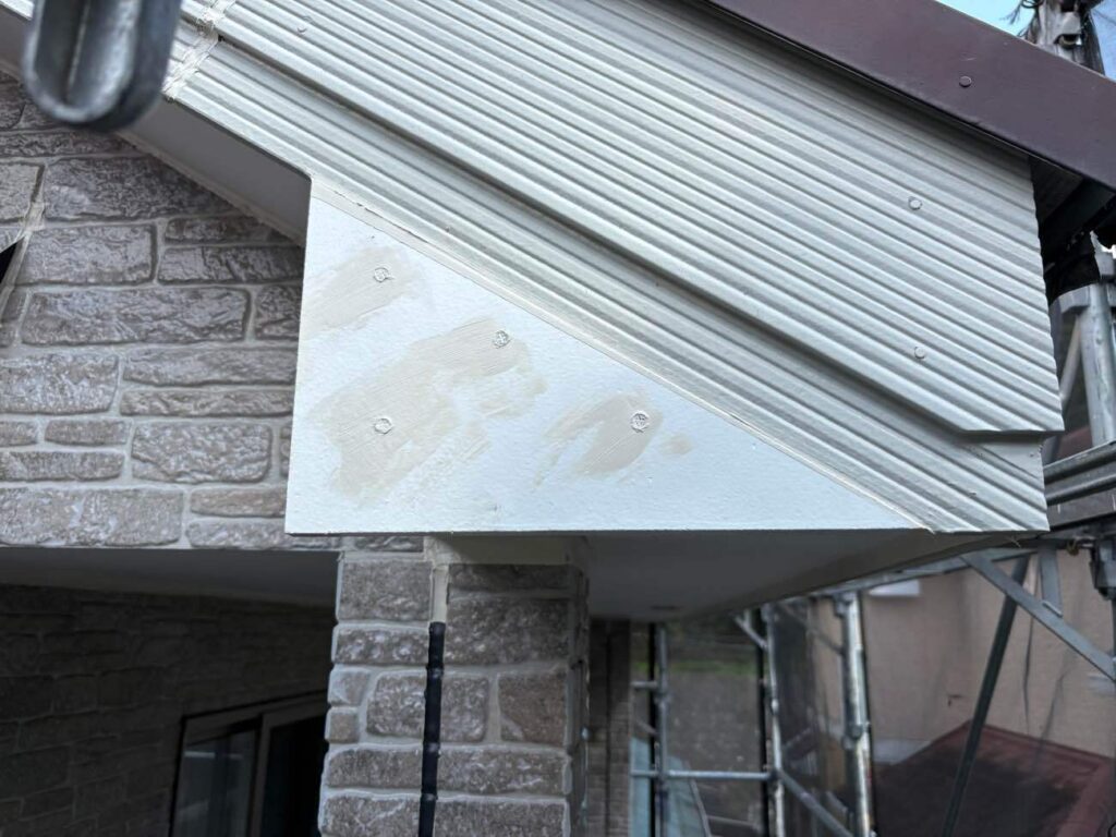 今回は、破風の三角部分が傷んでいたのでちょっとした補修工事を行いました。