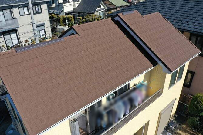 | 使用した材料 | 【外壁塗料】 プレミアムペイントジャパン No1ex(弱溶剤2液型無機ハイブリッド塗料) 【屋根材】 デクラ屋根システム セネター (ガルバリウム鋼板・天然ストーンチップ吹付仕上) |
