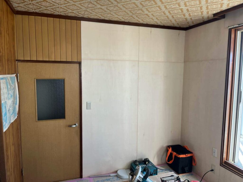 板壁の上に、クロス下地用のベニヤを張っていきます。
