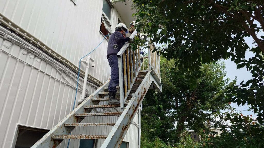 この鉄骨階段を解体して、新しい鉄骨階段に変わります。
