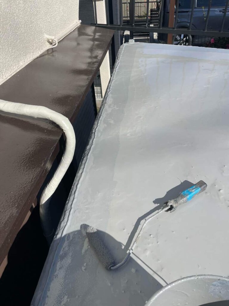 駐車場部分の防水工事も今日で無事に完了。
