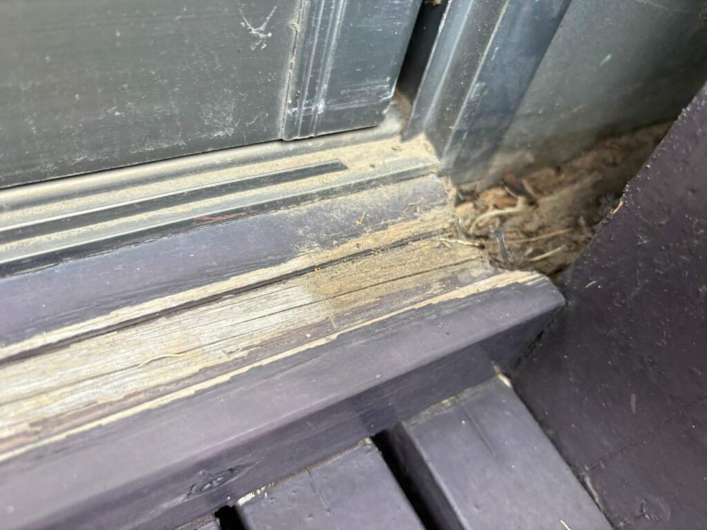 先日、木製の雨戸一筋(レール)の交換工事を行ないました。