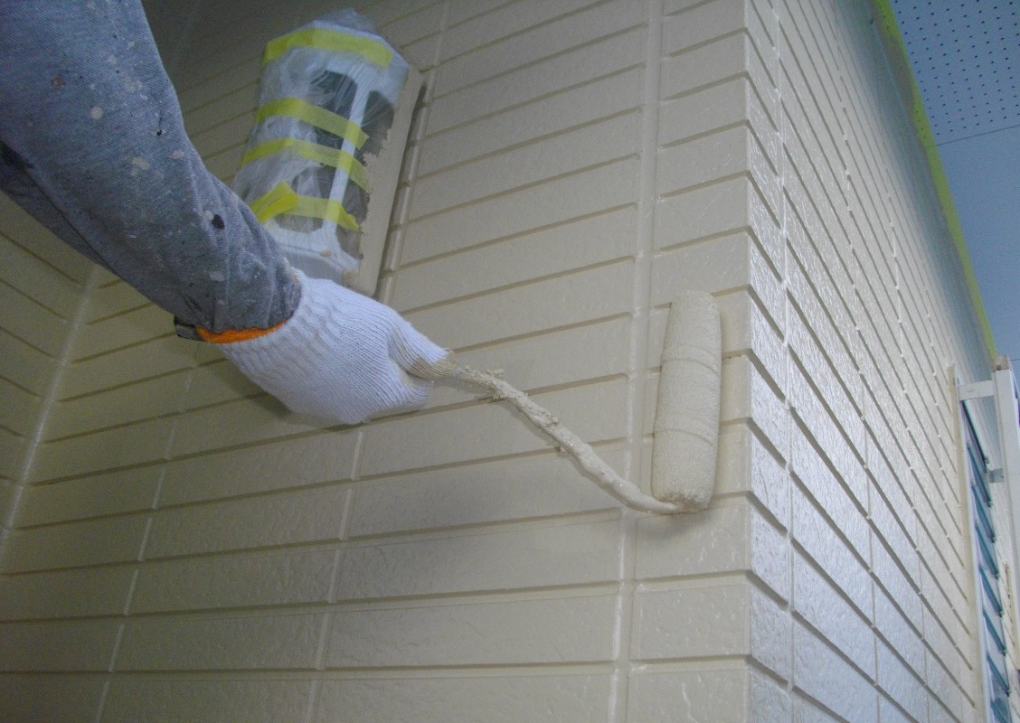 塗装の密着性を高めるため、建物の外壁に最適な下塗り材を使用します。