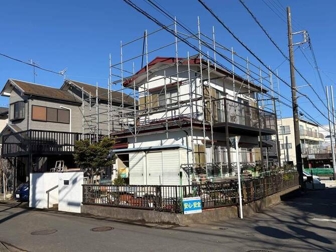 厚木市上落合で行なった、築50年住宅の外壁塗装工事の様子をご紹介します