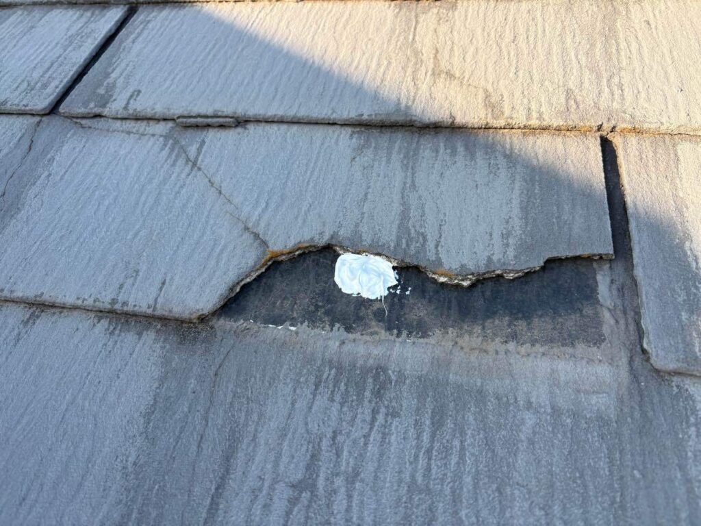 厚木市林の現場では、前回ご紹介した通り、屋根材が割れて一部が落下し、