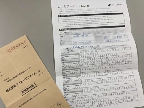 代表親方ブログいつもありがとうございます。神奈川県厚木市の外壁塗装・屋根工事専門店㈱アイビーリフォーム代表の小口(おぐち)です。 工事が終わった後に、お客様に書いていただいているアンケートが届きました。 今回届いたのは、少し前にお話し...